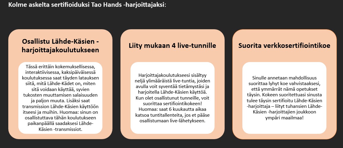 Kolme askelta sertifioiduksi Tao Hands -harjoittajaksi: